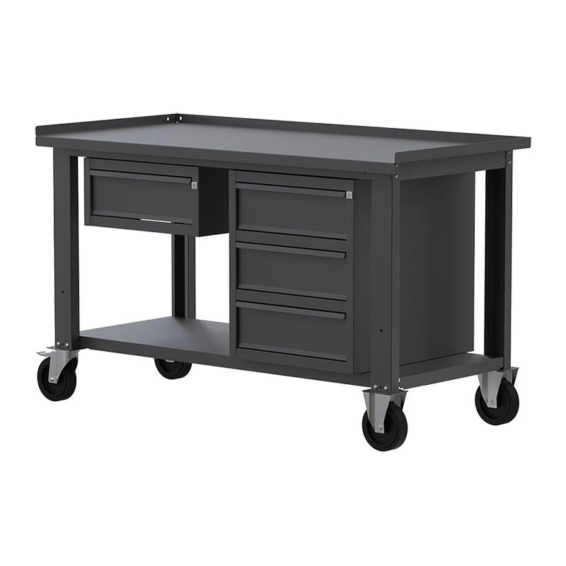 SOGI è lieta di presentarvi la nuova linea di banchi di lavoro INDUSTRIA 2.0: interamente MADE IN ITALY e dal design al passo con i tempi, si tratta di una vasta gamma di prodotti che possono essere inseriti nei più svariati ambienti, da un'officina a un laboratorio, da un garage ad una falegnameria. Il banco da lavoro SOGI X3N_106AR vanta una struttura particolarmente robusta, composta da scatolari metallici di diverse sezioni: ha quattro gambe provviste di piastre per il fissaggio a terra ed un telaio perimetrale rinforzato locato sotto il piano di lavoro. È munito di una cassettiera a 3 cassetti ad estrazione totale (codice prodotto: SOGI X3N_A-02) in aggiunta ad 1 cassetto anch'esso ad estrazione totale (codice prodotto: SOGI X3N_A-01). Le ruote, 2 fisse e 2 pivotanti con freno, hanno un diametro di ben Ø 150 mm . Il piano di lavoro, realizzato in lamiera spessa ben 3 mm, rappresenta la superficie di appoggio ideale in tutti quei lavori che richiedono elevata resistenza a