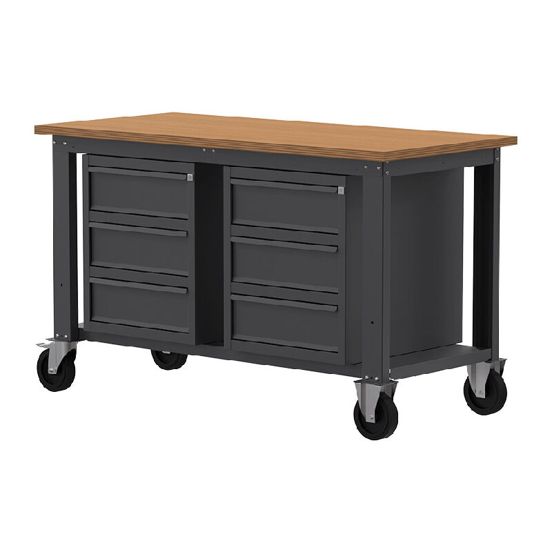 SOGI è lieta di presentarvi la nuova linea di banchi di lavoro INDUSTRIA 2.0: interamente MADE IN ITALY e dal design al passo con i tempi, si tratta di una vasta gamma di prodotti che possono essere inseriti nei più svariati ambienti, da un'officina a un laboratorio, da un garage ad una falegnameria. Il banco da lavoro SOGI X3N_108LR vanta una struttura particolarmente robusta, composta da scatolari metallici di diverse sezioni: ha quattro gambe provviste di altrettante ruote in gomma super elastica anti traccia, un telaio perimetrale rinforzato locato sotto il piano di lavoro è munito di due cassettiere a 3 cassetti ciascuna (codice singolo prodotto: SOGI X3N_A-02). Le ruote, 2 fisse e 2 pivotanti con freno, hanno un diametro di ben Ø 150 mm . Il piano di lavoro, realizzato in legno multistrato di faggio spesso 30 mm, è ecologico, longevo ed estremamente resistente: tutte caratteristiche che lo rendono la soluzione perfetta per tutti quei lavori pesanti di officina. La