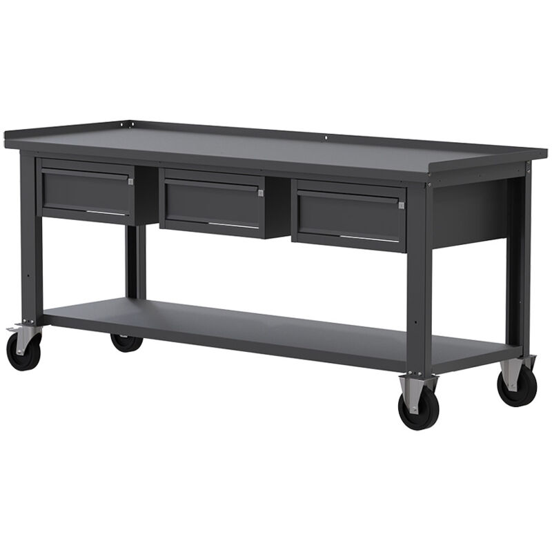 SOGI è lieta di presentarvi la nuova linea di banchi di lavoro INDUSTRIA 2.0: interamente MADE IN ITALY e dal design al passo con i tempi, si tratta di una vasta gamma di prodotti che possono essere inseriti nei più svariati ambienti, da un'officina a un laboratorio, da un garage ad una falegnameria. Il banco da lavoro SOGI X3N_124AR vanta una struttura particolarmente robusta, composta da scatolari metallici di diverse sezioni: ha quattro gambe provviste di altrettante ruote in gomma super elastica anti traccia, un telaio perimetrale rinforzato locato sotto il piano di lavoro ed è munito di 3 cassetti ad estrazione totale (codice singolo prodotto: SOGI X3N_A-01). Le ruote, 2 fisse e 2 pivotanti con freno, hanno un diametro di ben Ø 150 mm . Il piano di lavoro, realizzato in lamiera spessa ben 3 mm, rappresenta la superficie di appoggio ideale in tutti quei lavori che richiedono elevata resistenza a corrosione, ristrette condizioni igieniche, ottima resistenza al calore ed