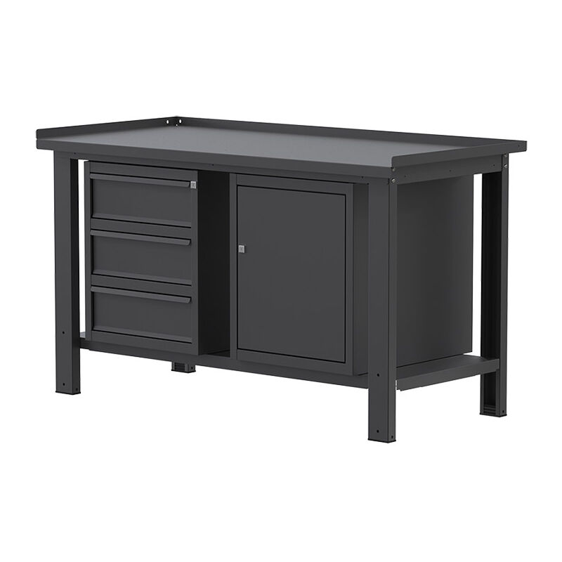 SOGI è lieta di presentarvi la nuova linea di banchi di lavoro INDUSTRIA 2.0: interamente MADE IN ITALY e dal design al passo con i tempi, si tratta di una vasta gamma di prodotti che possono essere inseriti nei più svariati ambienti, da un'officina a un laboratorio, da un garage ad una falegnameria. Il banco da lavoro SOGI X3N_111A vanta una struttura particolarmente robusta, composta da scatolari metallici di diverse sezioni: ha quattro gambe provviste di piastre per il fissaggio a terra ed un telaio perimetrale rinforzato locato sotto il piano di lavoro. È equipaggiato di due cassettiere: una con 3 cassetti ad estrazione totale (codice prodotto: SOGI X3N_A-02), l'altra con anta e pianetto interno rimovibile (codice prodotto: SOGI X3N_A-04). Entrambe le dotazioni vantano una pratica chiusura con serratura a cilindro . Il piano di lavoro, realizzato in lamiera spessa ben 3 mm, rappresenta la superficie di appoggio ideale in tutti quei lavori che richiedono elevata resistenza a