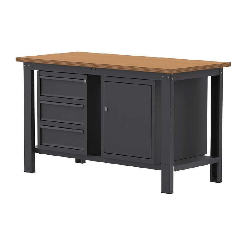 SOGI è lieta di presentarvi la nuova linea di banchi di lavoro INDUSTRIA 2.0: interamente MADE IN ITALY e dal design al passo con i tempi, si tratta di una vasta gamma di prodotti che possono essere inseriti nei più svariati ambienti, da un'officina a un laboratorio, da un garage ad una falegnameria. Il banco da lavoro SOGI X3N_111L vanta una struttura particolarmente robusta, composta da scatolari metallici di diverse sezioni: ha quattro gambe provviste di piastre per il fissaggio a terra ed un telaio perimetrale rinforzato locato sotto il piano di lavoro. È equipaggiato di due cassettiere: una con 3 cassetti ad estrazione totale (codice prodotto: SOGI X3N_A-02), l'altra con anta e pianetto interno rimovibile (codice prodotto: SOGI X3N_A-04). Entrambe le dotazioni vantano una pratica chiusura con serratura a cilindro . Il piano di lavoro, realizzato in legno multistrato di faggio spesso 30 mm, è ecologico, longevo ed estremamente resistente: tutte caratteristiche che lo rendono