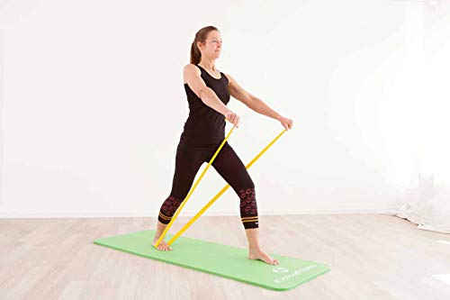 Disponibile in 4 gradi di resistenza: giallo 0,35mm (facile) / verde 0,45mm (medio) / rosso 0,55mm (forte) / blu 0,75mm (difficile). Quindi perfetta sia per esercizi di riabilitazione e fisioterapia che di ginnastica, aerobica e di allenamento muscolare.