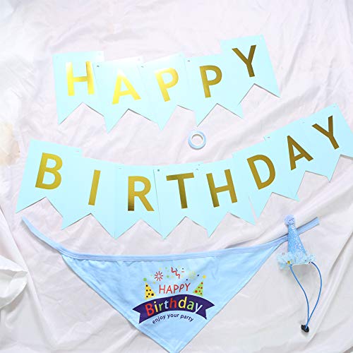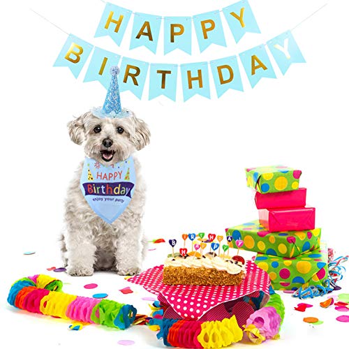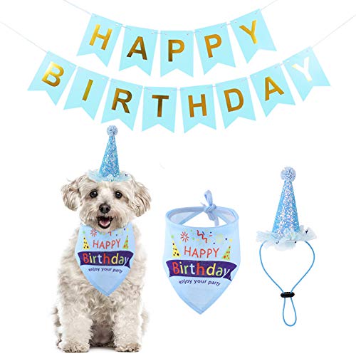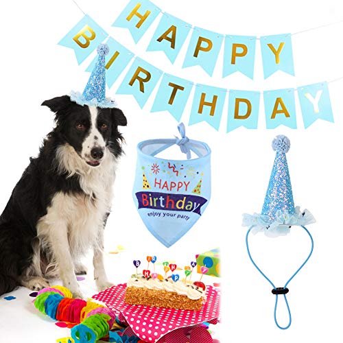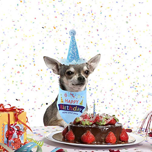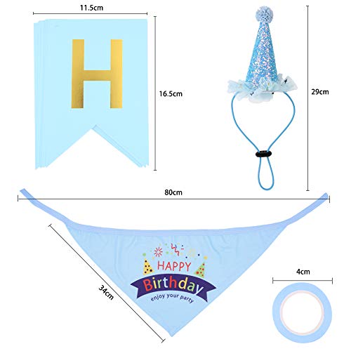 Bandana di compleanno per cuccioli, cappello di compleanno per cuccioli, accessori per feste di compleanno, decorazioni (blu)