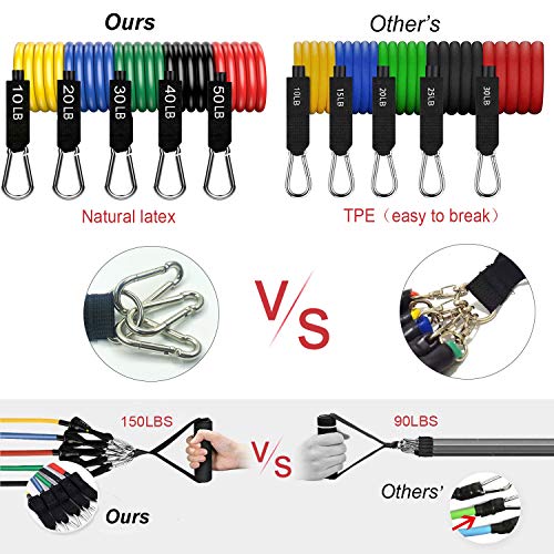 Bande Elastiche Resistenza, Set di Fasce di Resistenza 150LBS, Lattice naturale Set Elastici Fitness per Allenamento Casa, Yoga, Pilates, Tubi Resistenza per Energia Sollevamento Attrezzi