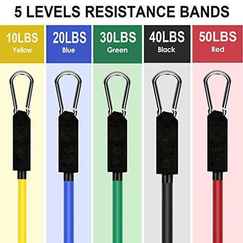 【Il prodotto include/servizio post-vendita】 5 bande di resistenza, 1 ancoraggio per porta, 2 cinghie per caviglie, 2 maniglie, 1 borsetta, 1 guida per il fitness, se avete domande sui nostri prodotti, non esitate a contattarci