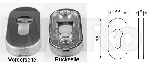 2 rosette ovali a incastro, in acciaio inox, per il cilindro della serratura. 1 barra a femmina quadra da 8 mm.