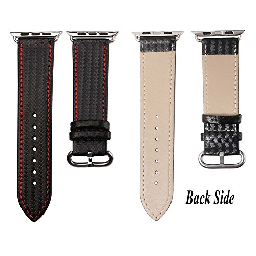 Bandmax PU Leather Replacement Strap for Apple Watch, Stainless Steel Metal Clasp Buckle Comfortable Genuine Leather Watch Band for Apple Watch Series 2/1 42MM all Models(Carbon Fiber Pattern 42MM)