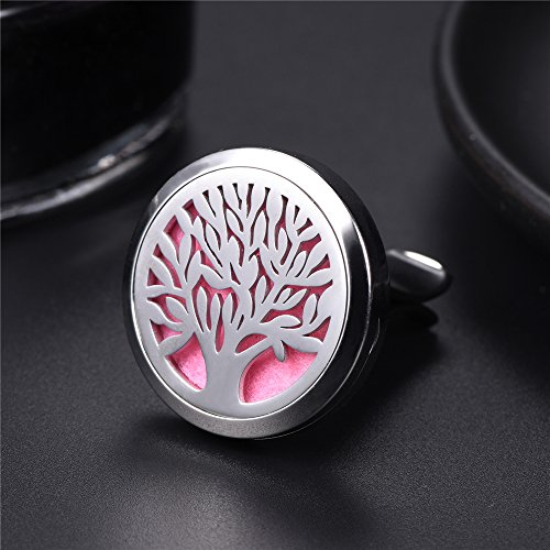 Bandmax Tree of Life Car Perfume Locket Air Freshener Essential Oil Diffuser Vent Clip with 8 Pieces Perfume Supplemental Pad (Silver)