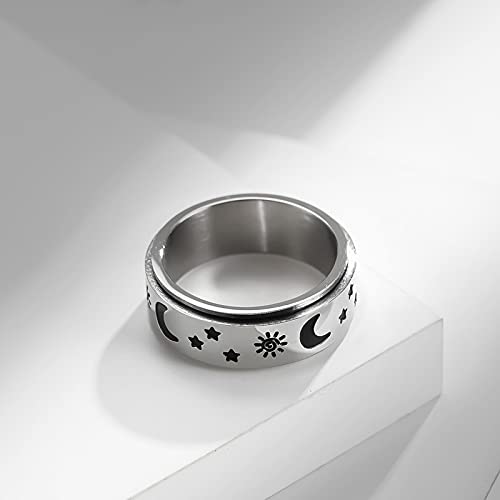 Banemi Sntieecr Anelli Acciaio Inossidabile Anello per Uomo Donna Oro Stelle Luna Sole Misura Dell'anello 27