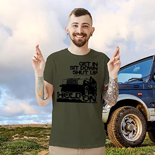 T-shirt uomo 4x4 Get In Sit Down Shut Up Hold On. Tutte le nostre camicie off road 100% cotone morbido al tatto e lavabili in lavatrice