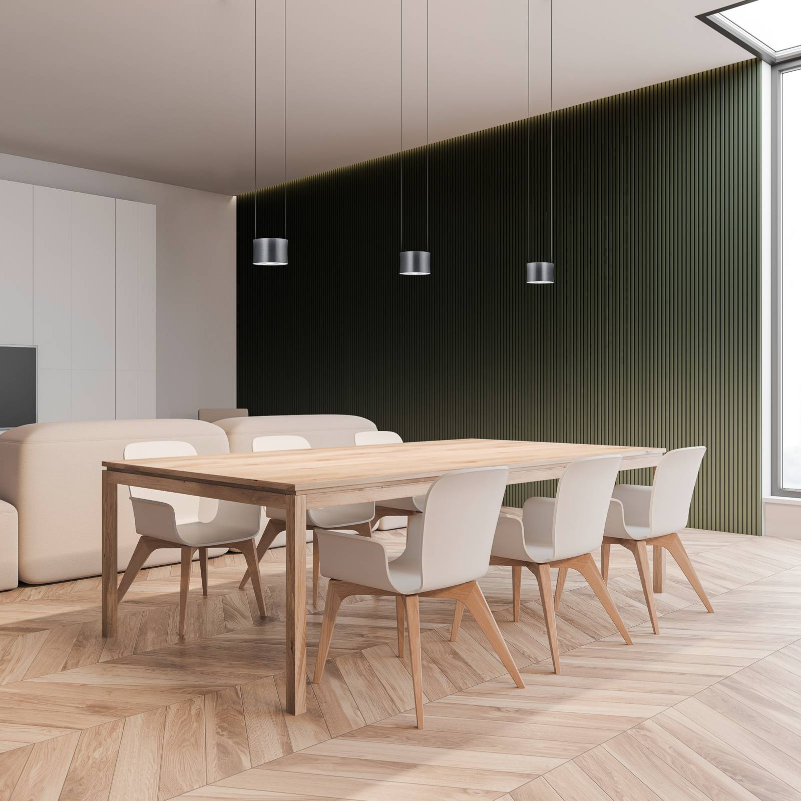Apparecchio a sospensione Impulse LED a tre lampade in colore antraciteTre piccoli elementi luminosi cilindrici che si irradiano verso l'alto e verso il basso su una lunga calotta: questo è l'apparecchio a sospensione Impulse LED di BANKAMP. L'apparecchio anodizzato color antracite opaco conferisce modernità a qualsiasi interno e crea un'atmosfera di luce straordinaria nell'ambiente.L'apparecchio a sospensione Impulse LED di alta qualità è dotato di un reattore LED dimmerabile. Può essere regolata con un dimmer a taglio di fase (non incluso). La luce bianca calda dei LED installati è inoltre caratterizzata da una resa cromatica particolarmente buona (Ra < 90), per cui tutti i colori nella luce dell'apparecchio appaiono molto naturali e non distorti.