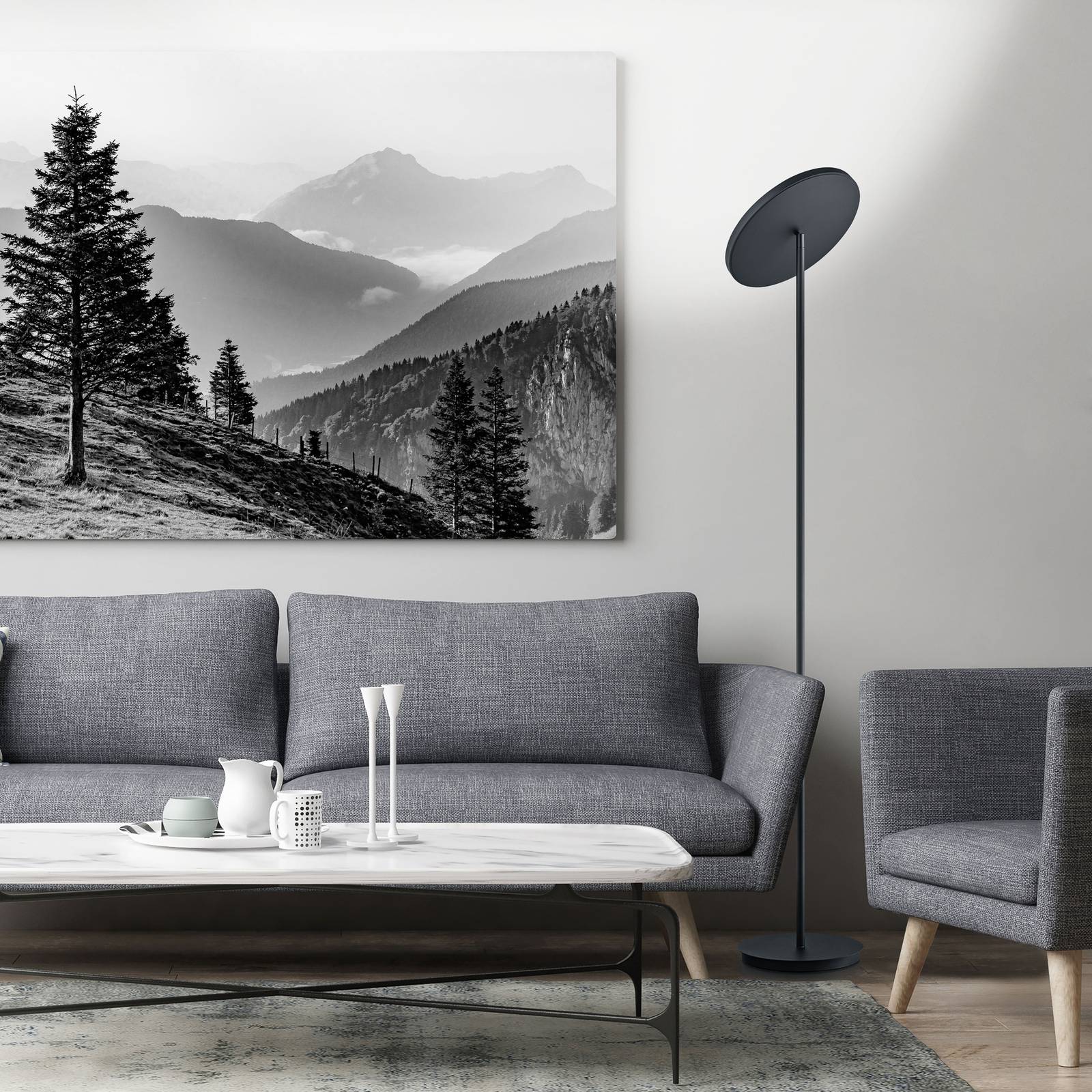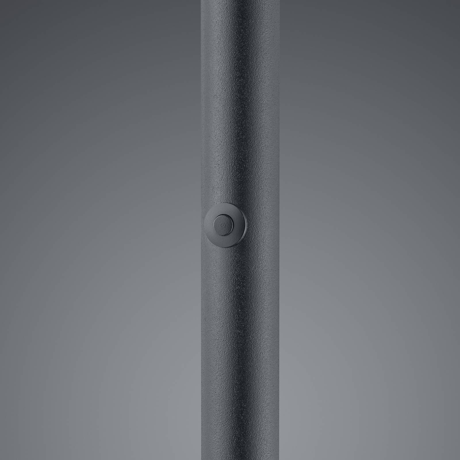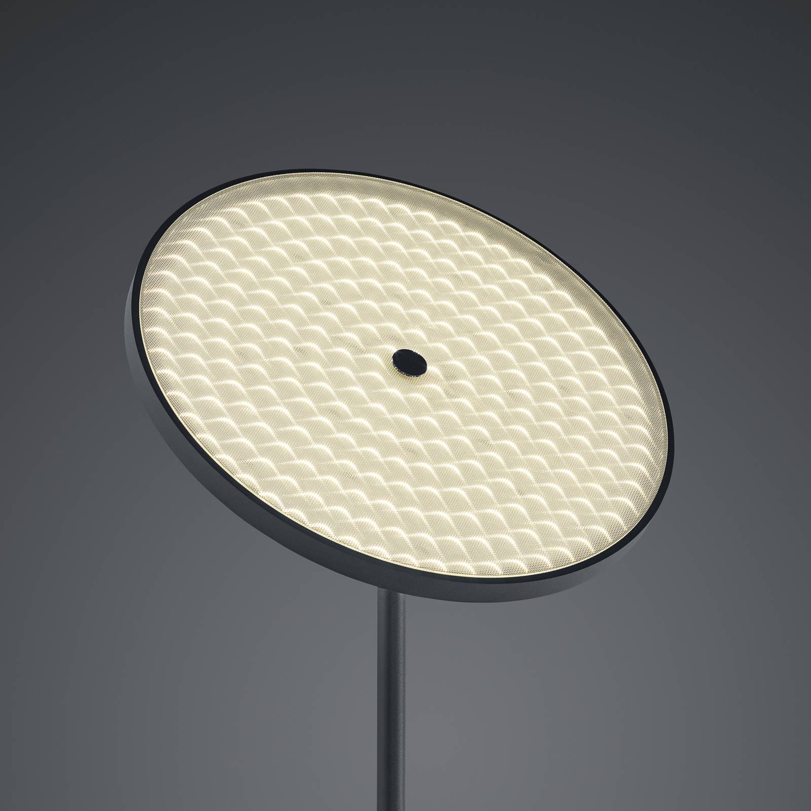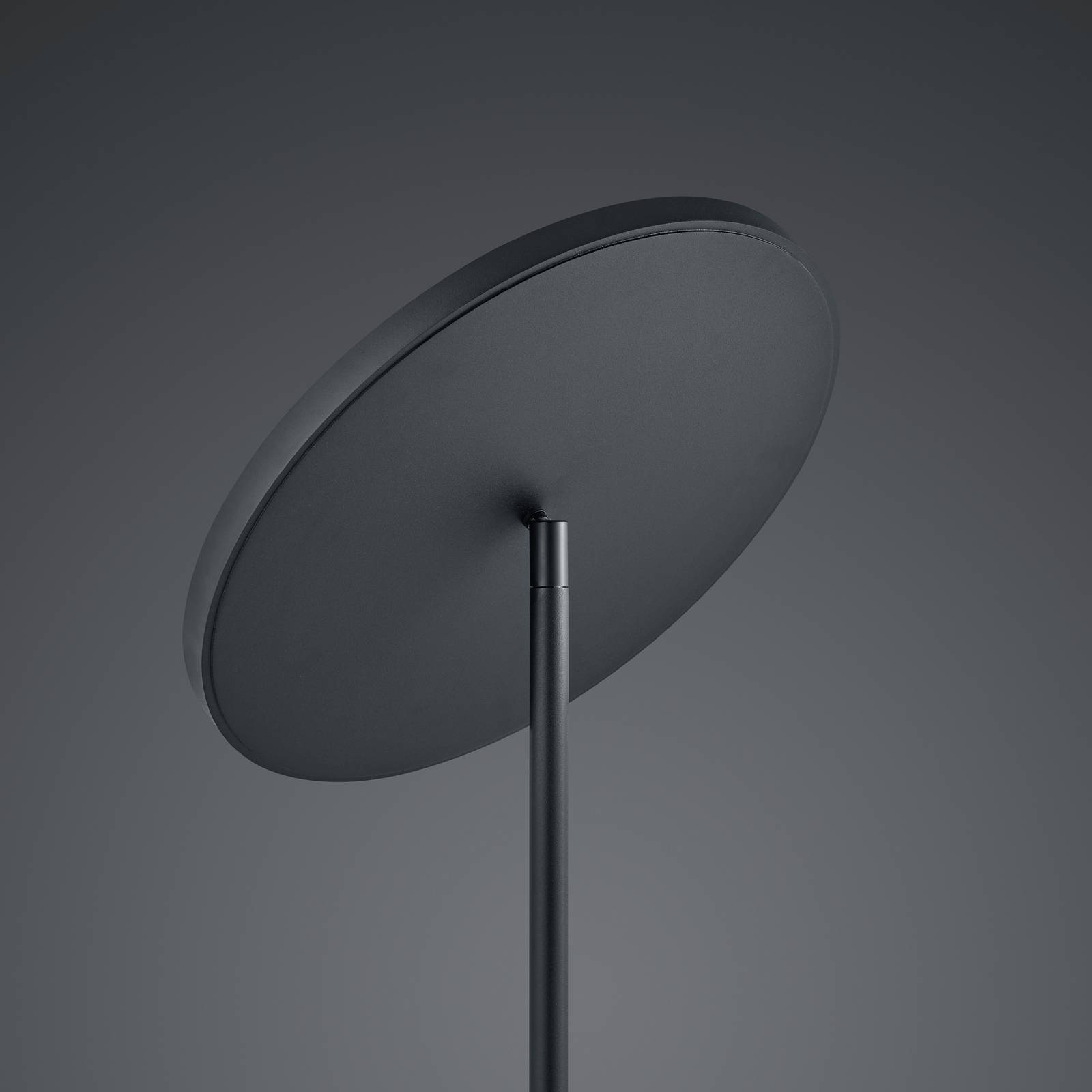 Lampada da terra a LED Solid con paralume girevole - dimmerabile Questa lampada da terra è qualcosa di molto speciale: molto minimalista nel look, all'avanguardia in termini di tecnologia di illuminazione. È dotato di potenti LED - distribuiti su una vasta area attraverso il paralume a forma di disco - che generano un elevato flusso luminoso e brillano in un piacevole bianco caldo che crea un'atmosfera di luce suggestiva. Sull'asta del telaio è installato un dimmer a sfioramento, che può essere utilizzato per regolare la luminosità della luce in base alle esigenze individuali. L'indice di resa dei colori è dato dall'alto valore CRI>95, il che significa che i contorni e i colori dell'ambiente appaiono molto fedeli alla natura. Il paralume può essere ruotato in modo che la direzione della luce possa essere regolata secondo necessità.