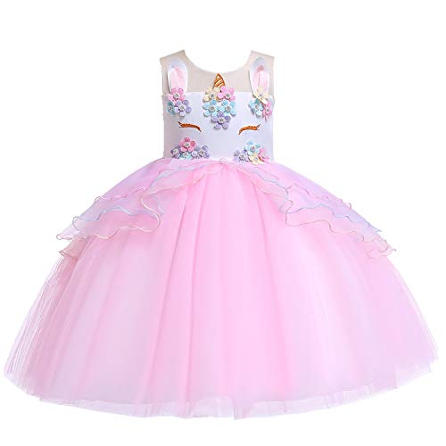 BanKids Vestito da principessa, da bambina, con unicorno, per bambine, per feste, 2-3 anni (100, D0007)