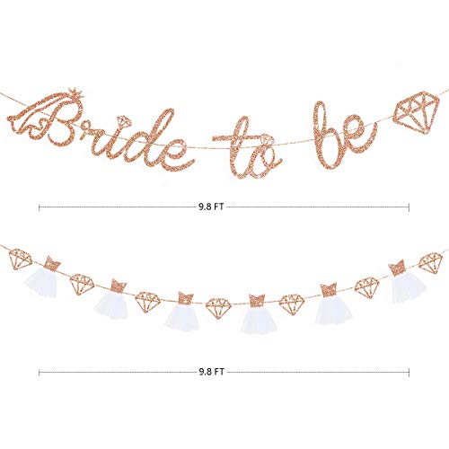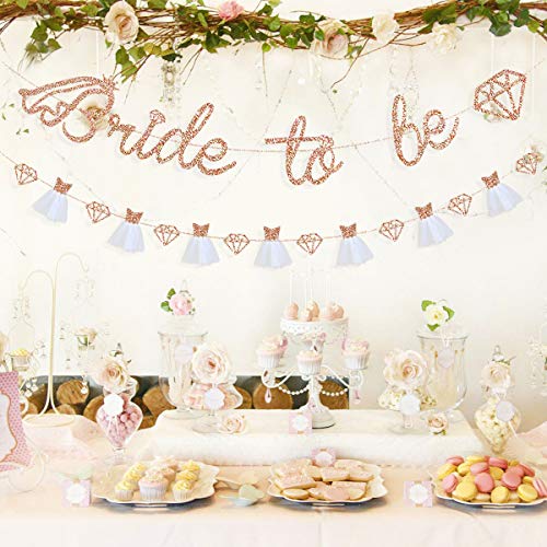 Contenuto della confezione: kit di decorazioni per feste scintillanti su entrambi i lati in oro rosa. La confezione include 1 banner con lettere BRIDE TO BE e 1 ghirlanda nuziale con diamanti 3D.