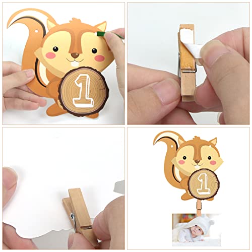 Banner fotografico per il 1° compleanno: il set contiene 12 carte animali e 12 clip di legno. La clip ha un adesivo a doppia faccia per un facile fissaggio.