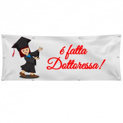 Banner Striscione PER LAUREA E' FATTA DOTTORESSA Personalizzabile - Banner PVC Da Esterno GARANZIA 10 ANNI (100X50 CM)