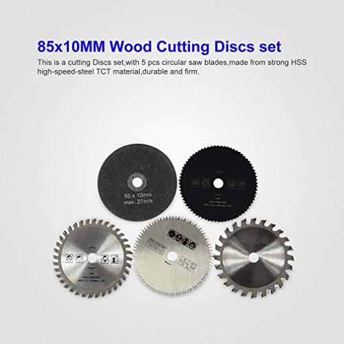 Bansd 5PCS HSS TCT Utensile Rotante per Sega Circolare a Lama 85x10MM Set di Dischi da Taglio per Legno Argento e Nero