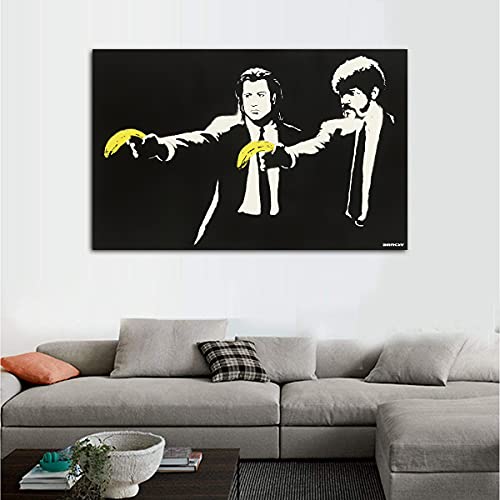Bansky - Quadro su tela "Pulp Fiction Graffiti Street Art", stampa artistica da parete moderna, XXL, con cornice da 60 x 40 cm