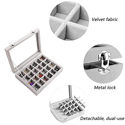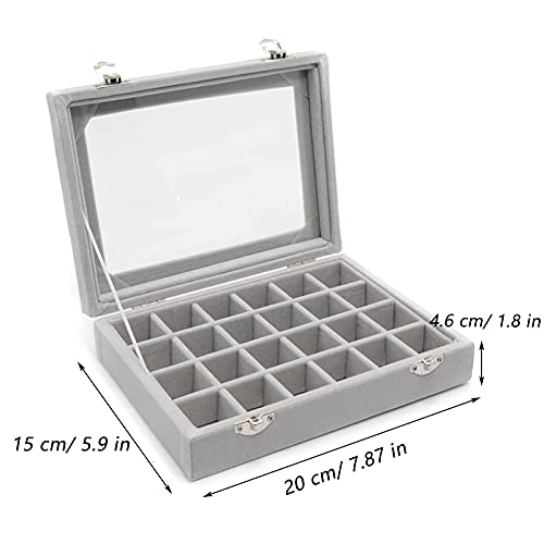 Bantre Scatola Portagioie in Velluto Grigio, Scatola Porta Anelli Velluto Grigio, Grigio Scatola Gioielli con 24-Griglia, per Collana, Bracciale, Anelli, Orecchini (Grigio)