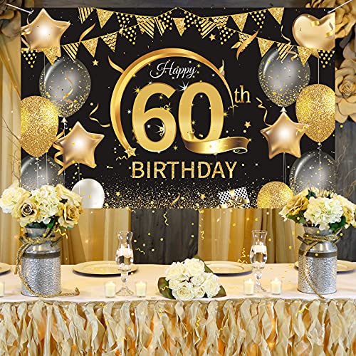 Banydoll 60 Anni Compleanno Decorazioni Oro Nero, Addobbi Compleanno 60 Anni Uomo Decorazioni Compleanno Donna per Decorare Festa di Compleanno Anniversario