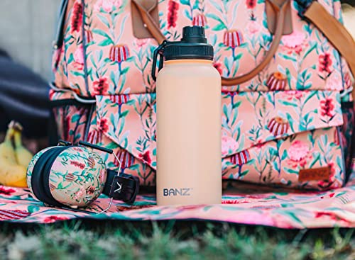 BANZ Bottiglia d'acqua isolata a doppia parete, grande, in acciaio inox e sottovuoto, riutilizzabile, con coperchio sportivo bonus, 950 ml, albicocca