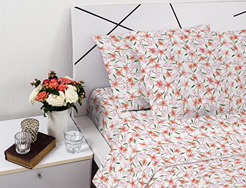Banzaii Completo Letto Matrimoniale, 100% Cotone, per Materasso Largo 160/170 cm e Alto fino a 35 cm, con 2 federe, Silvia Rosso, Made in Italy