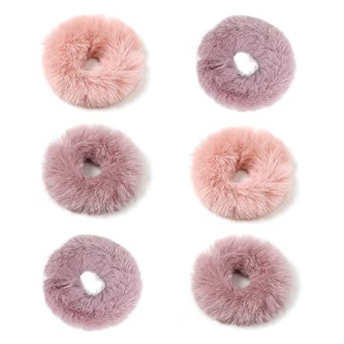 Banzimiao 6 elastici per capelli in pelliccia sintetica Fluffy, morbidi elastici per capelli e coda di cavallo, per capelli