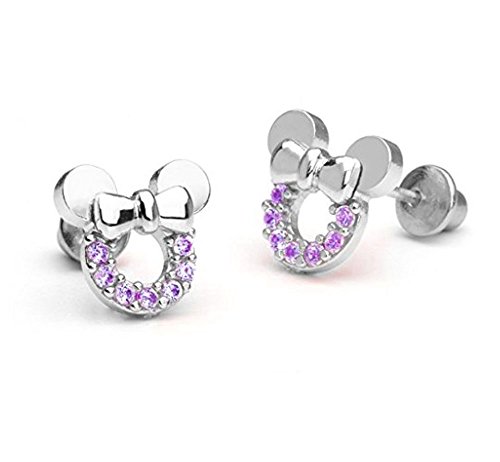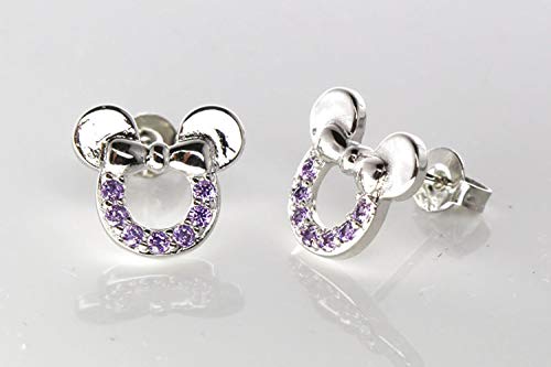 Baobei mouse minnie gioielli per donne argento sterling zirconi cubici hollow ametista mickey mouse orecchini orecchini regalo per ragazze bambini (f1781)