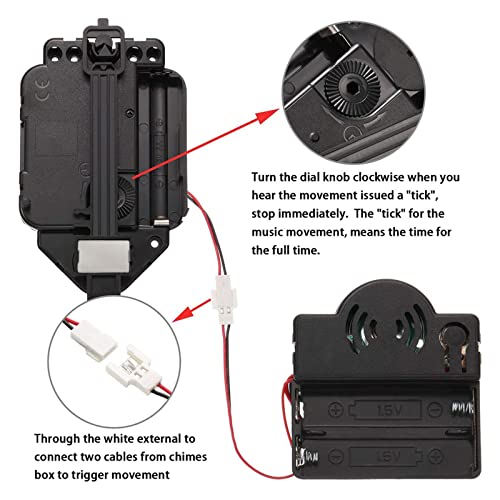 Il movimento a pendolo con suoneria riproduce 'ora, silenzia automaticamente i rintocchi dopo:00 fino alle 5:00. Il movimento utilizza 1 batteria AA e il utilizza 2 batterie AA. (non incluso)