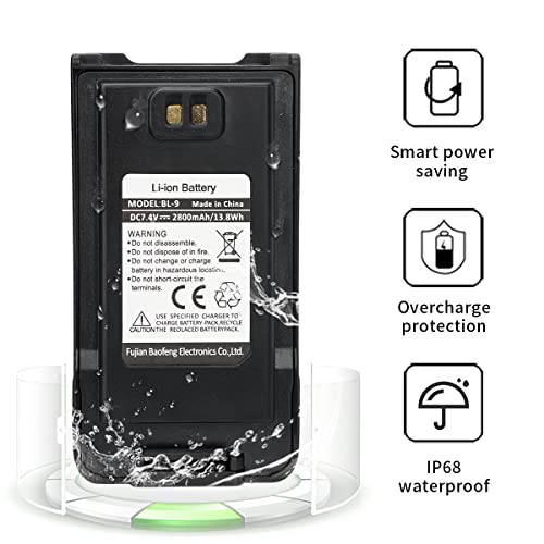 batteria BL-9 compatibile con UV-9RPRO GMRS-9R UV-9RPlus UV-XR BF-T57 ecc. Walkie Talkie, nota: questa batteria non è compatibile con UV-9G