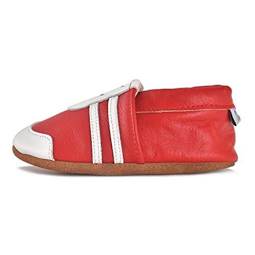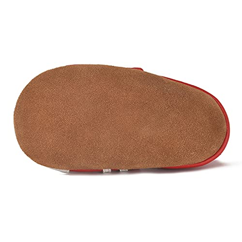 Baolesem - Scarpine primi passi per bambini, unisex, in morbida pelle, con suola in camoscio antiscivolo, misura selezionabile, Rosso (Sneaker bianche, rosse.), 12-18 mesi
