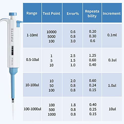 BAOSHISHAN Micropipetta regolabile micro pipetta da 10-100ul per pipettatore da laboratorio con 200 puntali per pipetta