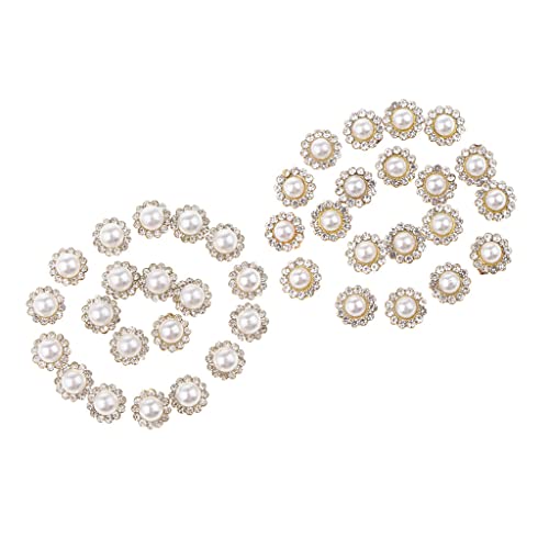 B Baosity 40x Abbellimento per Scrapbooking con Bottoni a Forma di Fiore di Perle Finte con Strass 8mm + 10mm