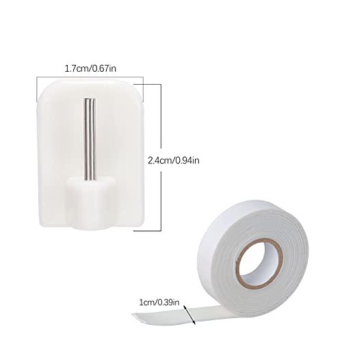 【Combinazione set】Riceverai 20 ganci per tende autoadesivi bianchi, misurando 2,4 cm di lunghezza e 1,7 cm di larghezza. 1 rotolo di nastro biadesivo in schiuma bianca, dimensioni: 1mm * 1cm * 20 iarde, dimensioni moderate, sufficienti per soddisfare le vostre esigenze quotidiane