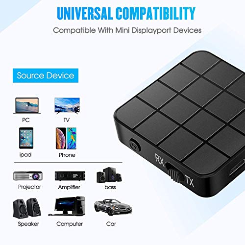 【 Adattatore Bluetooth 5.0 】 Il trasmettitore / ricevitore Bluetooth utilizza la tecnologia 5.0 che offre una trasmissione più stabile e veloce, un basso consumo energetico e una qualità audio superiore. Bluetooth 5.0 con un adattatore audio, la velocità di trasferimento dei dati è due volte superiore a quella del Bluetooth 4.2 e può essere mantenuta a una distanza fino a 12 metri (senza barriere).