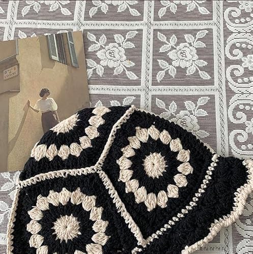 BAOZENGMUY Pescatore Berretto Cappello da Pescatore Lavorato A Maglia A Fiore Cavo da Donna Cappello da Pescatore Abbinato all'Uncinetto Fatto A Mano OneSize Nero
