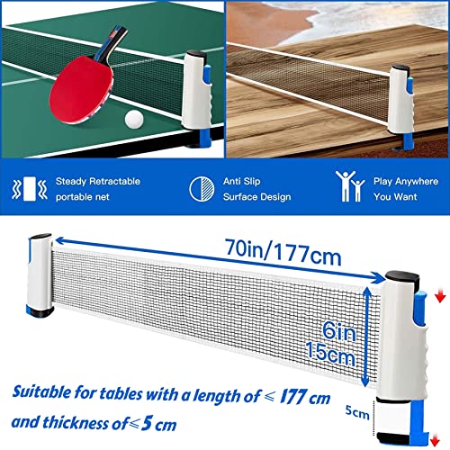 Baozun Set Racchette Ping Pong con 2 Racchette da Ping Pong, 3 Palline, Rete Ping Pong da Tavolo Allungabile e Borsa