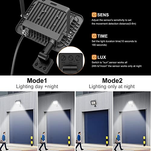 【3 MODALITÀ REGOLABILI】--Il rilevatore di movimento ha la modalità tempo, la modalità SENS e la modalità LUX. LUX viene utilizzato per impostare il lavoro diurno o notturno, TIME viene utilizzato per impostare il tempo di ritardo del sensore (10-180 secondi). SENS viene utilizzato per impostare la sensibilità del sensore (8 m).
