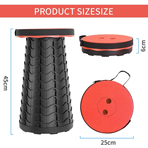 Baralir Sgabello pieghevole portatile - Carico massimo 400 libbre - Sgabello telescopico per campeggio, viaggi, pesca (sgabello da campeggio rosso)