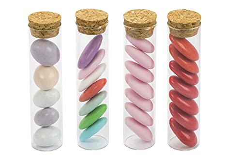 BARATTI - Provetta Porta Confetti in Vetro con Tappo in Sughero Altezza 10 cm Diametro 2,5 cm - Confezione da 24 Pezzi -