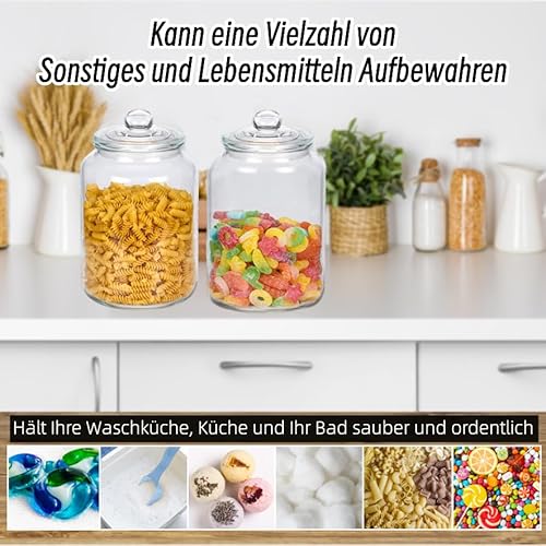 Impermeabile: i nostri contenitori sono dotati di coperchi e guarnizioni ermetiche che tengono lontane l'umidità e impediscono che il detersivo si aggreghi. Il set di contenitori in vetro contiene 2 barattoli da 2000 ml con 2 coperchi in vetro, 26 etichette.