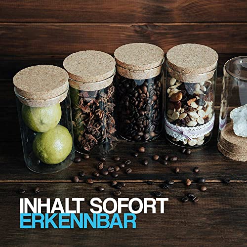 10 barattoli per conservazione con tappo di sughero a pressione | alta qualità ✓ Extra Forte ✓ decorativo e pratico per la casa., 90 x Ø50 mm, 10