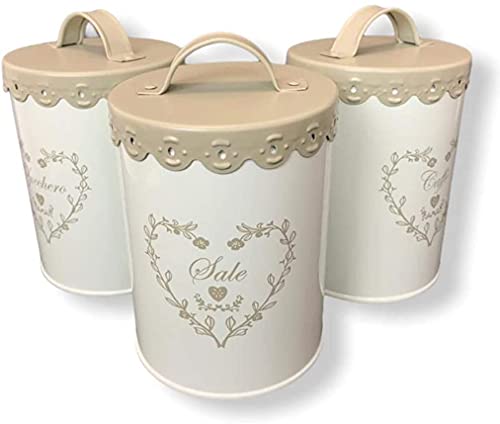 ✔️ Tris barattoli da cucina per il sale, zucchero e caffè realizzati in latta