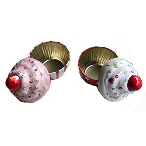 Set di 2 barattoli in latta a forma di cupcake, dolce coperchio decorato con ciliegia, colore rosso e bianco, dimensioni: 8 x 8 cm, volume: 120 ml