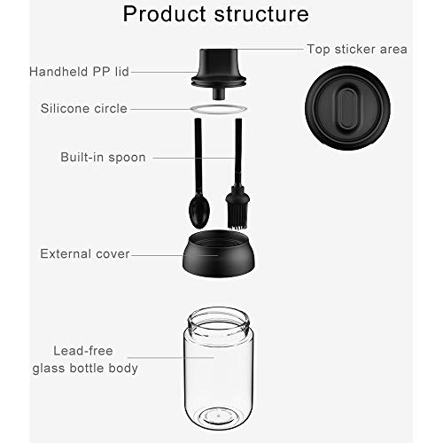 Design integrato di coperchio e cucchiaio: il design unico del cucchiaio e del coperchio è ergonomico e facile da prendere. Basta aprire il coperchio attaccato al cucchiaio/cucchiaio/pennello e semplicemente estrarre le spezie desiderate.