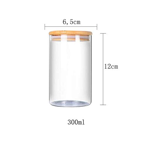 Set di 5 Barattoli di Vetro Contenitori Alimentari Vetro con Coperchio di Tenuta Aria bambù, Barattolo Sale Zucchero caffè Porta Biscotti Contenitore Pasta (300ml)