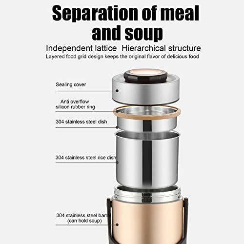 ☕☕【GRANDE CAPACITÀ E MULTISTRATO】☕☕Il contenitore per il pranzo isolato è sigillato con un coperchio anti-trabocco, l'ampia bocca è facile da riempire e versare il cibo, ha una grande capacità di 2000 ml. Design a tre livelli per conservare separatamente alimenti di base, cucine e zuppe per evitare odore, più pratico.