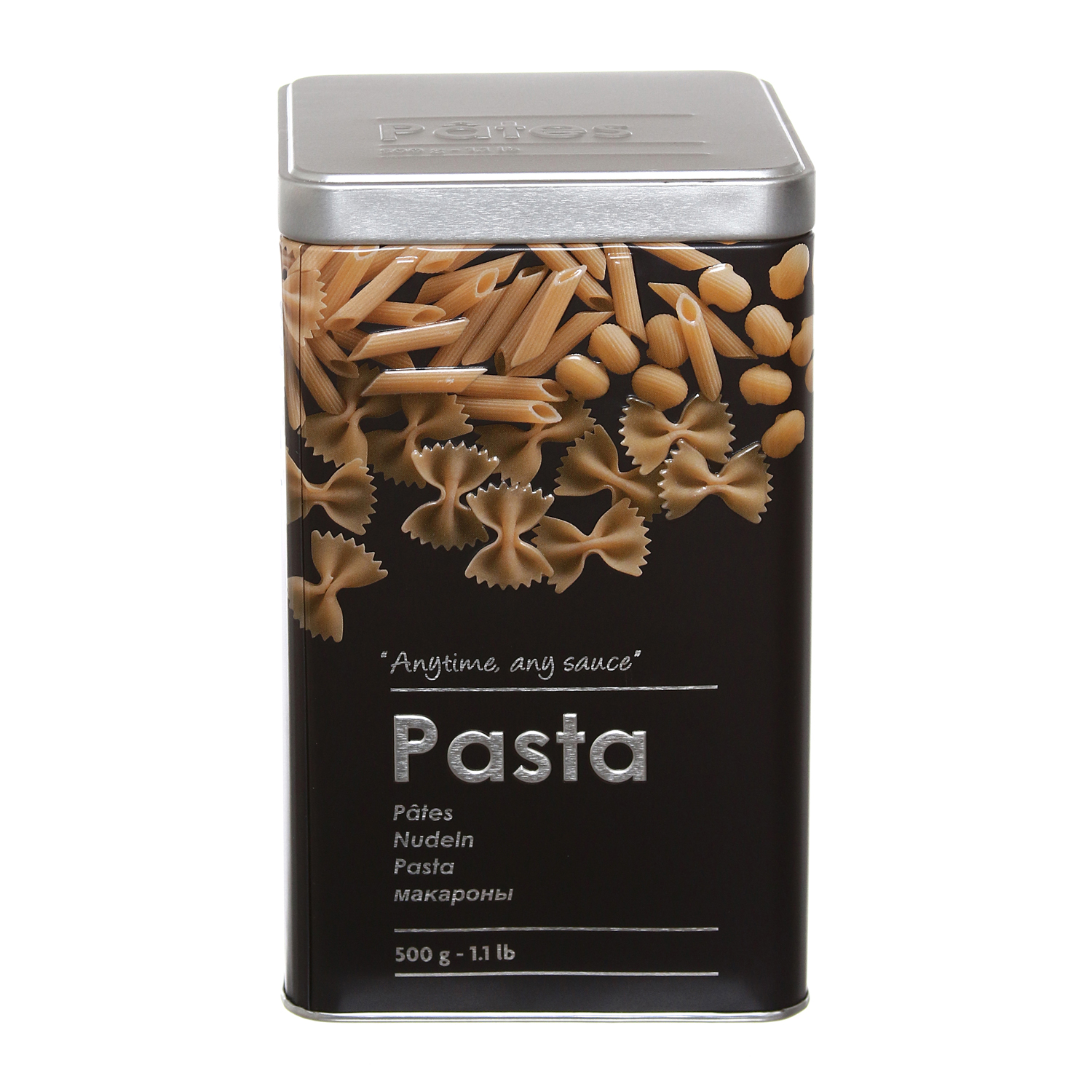 Organizza la tua dispensa in cucina con pratici barattoli ermetici come questo contenitore in latta completo di coperchio. Al suo interno c'è tutto lo spazio per conservare le tue scorte di pasta. La scritta e il decoro rendono facile l'individuazione del contenuto senza dover aprire prima il barattolo: starà bene anche in bella vista sul piano in cucina! La struttura in metallo è solida e resistente e rifinita da linee 3D. Capacità: 500 ml. Dimensioni: 10,5x10,5xh10,5 cm. Si consiglia il lavaggio a mano.