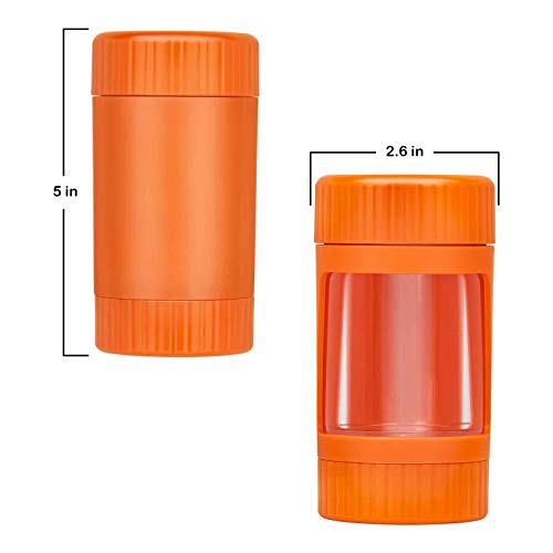 【Dimensioni del prodotto】 Nessuna smerigliatrice: diametro: 66 mm / 2,6 pollici Altezza: 102 mm / 4 pollici Capacità: 110 ml Con smerigliatrice: diametro: 66 mm / 2,6 pollici, altezza: 127 mm / 5 pollici, capacità: 110 ml, grandi dimensioni! Che si tratti di pillole, artigianato per hobby o qualsiasi altra cosa, hai appena scoperto che il barattolo ermetico fa sempre il lavoro.