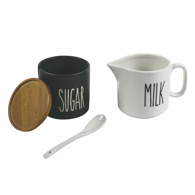 Set zuccheriera e lattiera in gres, Urban Kitchen Urban Kitchen: la cucina dedicati agli amanti della contemporaneità Insalatiere, portaspezie, tazze e tutte quelle cose che in una cucina non devono mai mancare si trasformano in elementi di design Come? Con la linea Urban Kitchen il legno guadagna la scena e si abbina all'intramontabile black&white per regalare un atmosfera di ispirazione metropolitana Caratteristiche Tecniche: In gres Zuccheriera con tappo in legno e cucchiaino in gres Con scritta Misure lattiera: l. 13 x p. 9 x h. 9 cm Misure zuccheriera: Ø 9 x h. 9 cm Si consiglia lavaggio a mano Colore: Bianco + Nero Materiale: Gres
